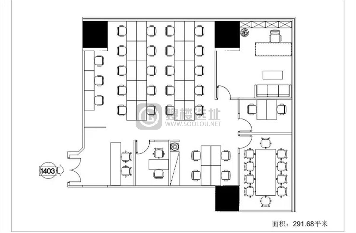 - 面积信息 292㎡,使用率约70% ,可容纳工位30~42个