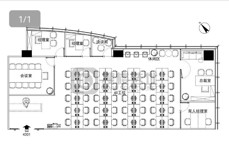 - 面积信息 398㎡,使用率约60%% ,可容纳工位40~57个