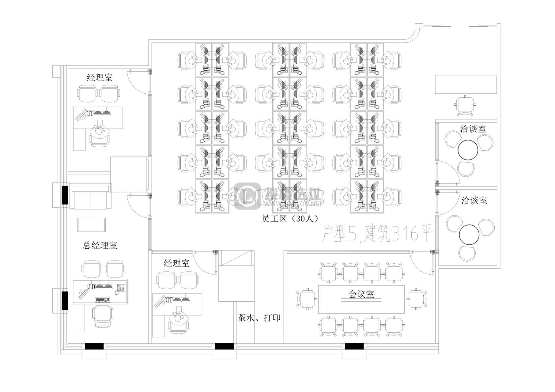 - 面积信息 316㎡,使用率约70% ,可容纳工位32~46个
