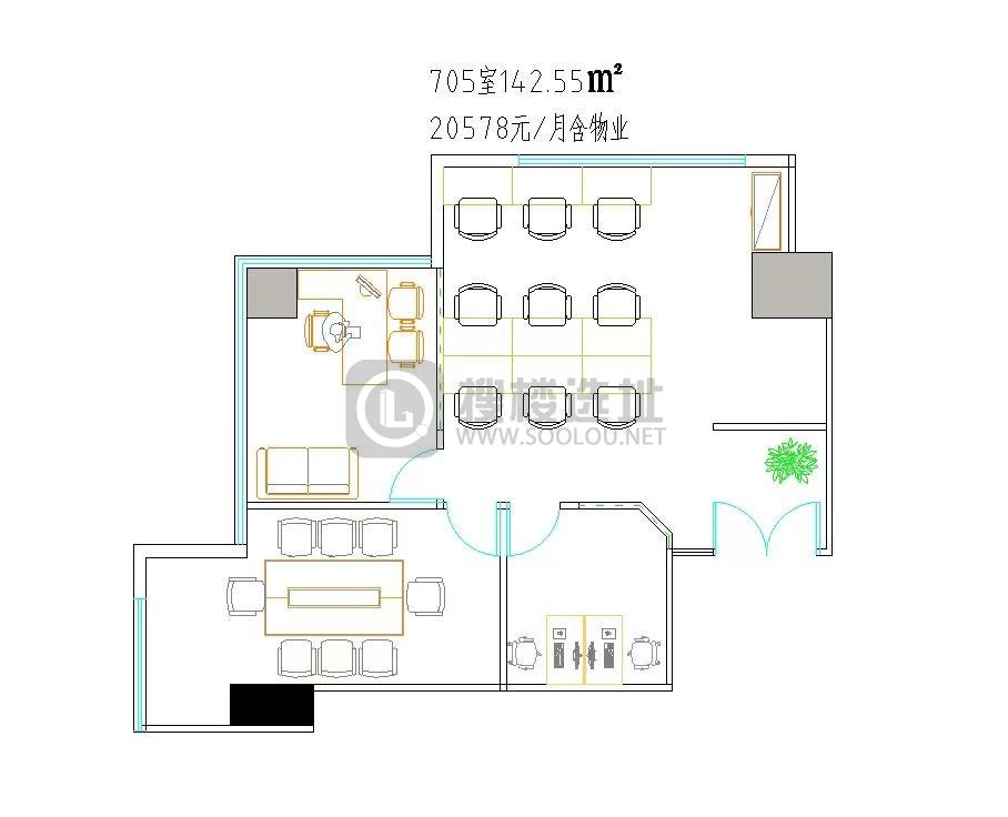 - 面积信息 142㎡,使用率约70% ,可容纳工位15~21个