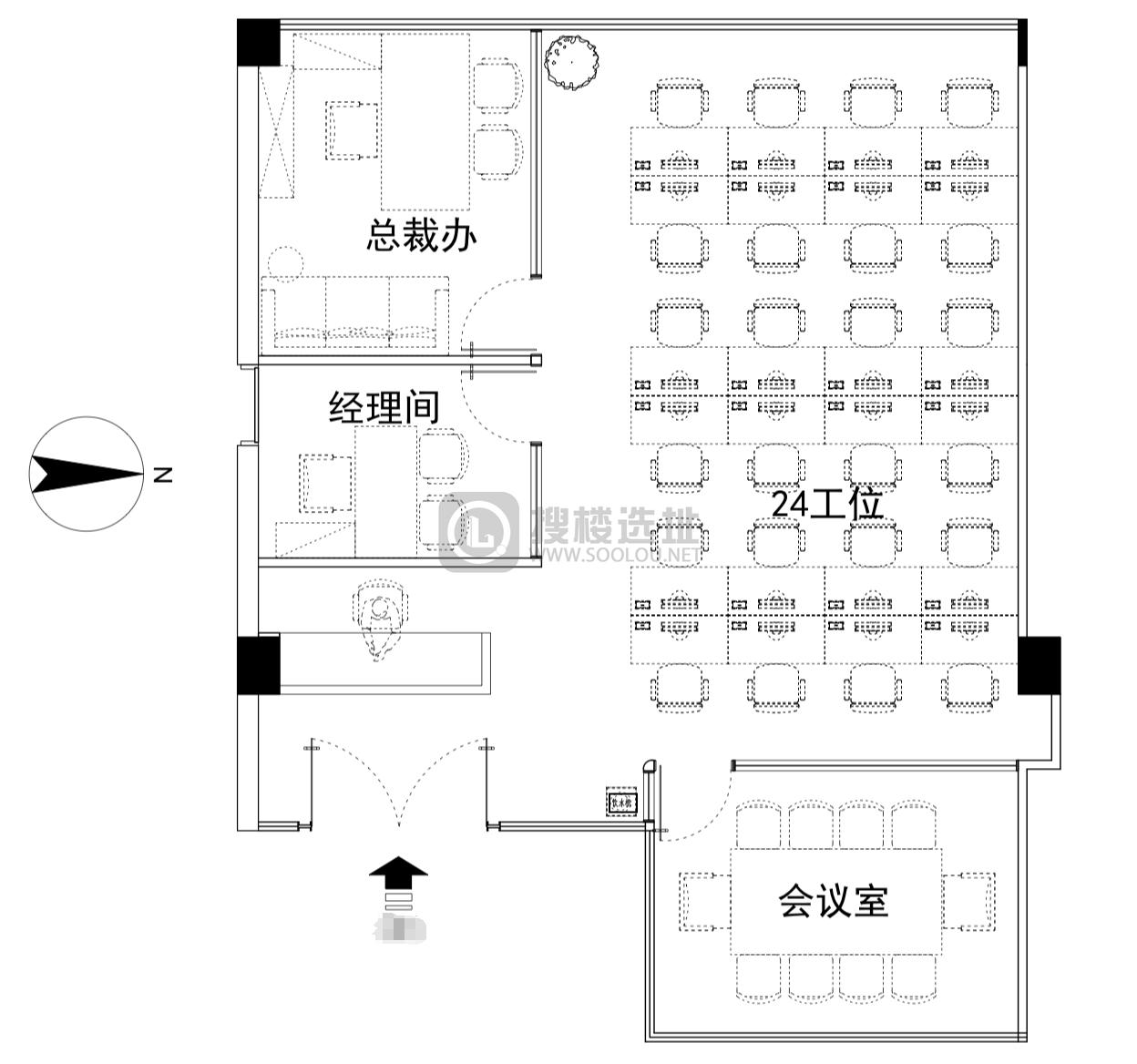 - 面积信息 239㎡,使用率约60% ,可容纳工位24~35个