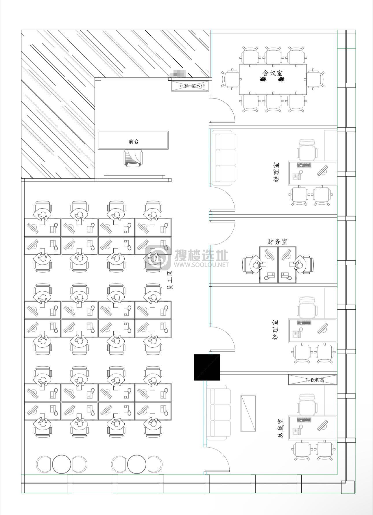 - 面积信息 309㎡,使用率约60% ,可容纳工位31~45个