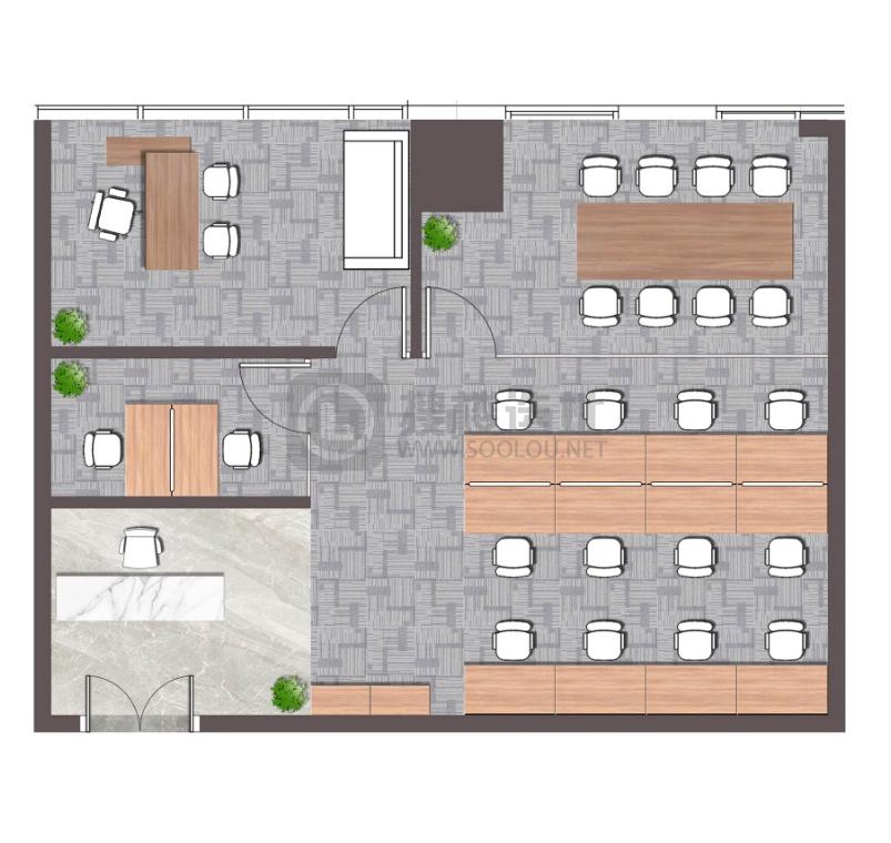 - 面积信息 205㎡,使用率约60% ,可容纳工位21~30个