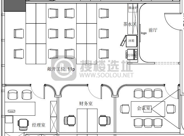 • 面积信息 119㎡,使用率约70% ,可容纳工位12~17个