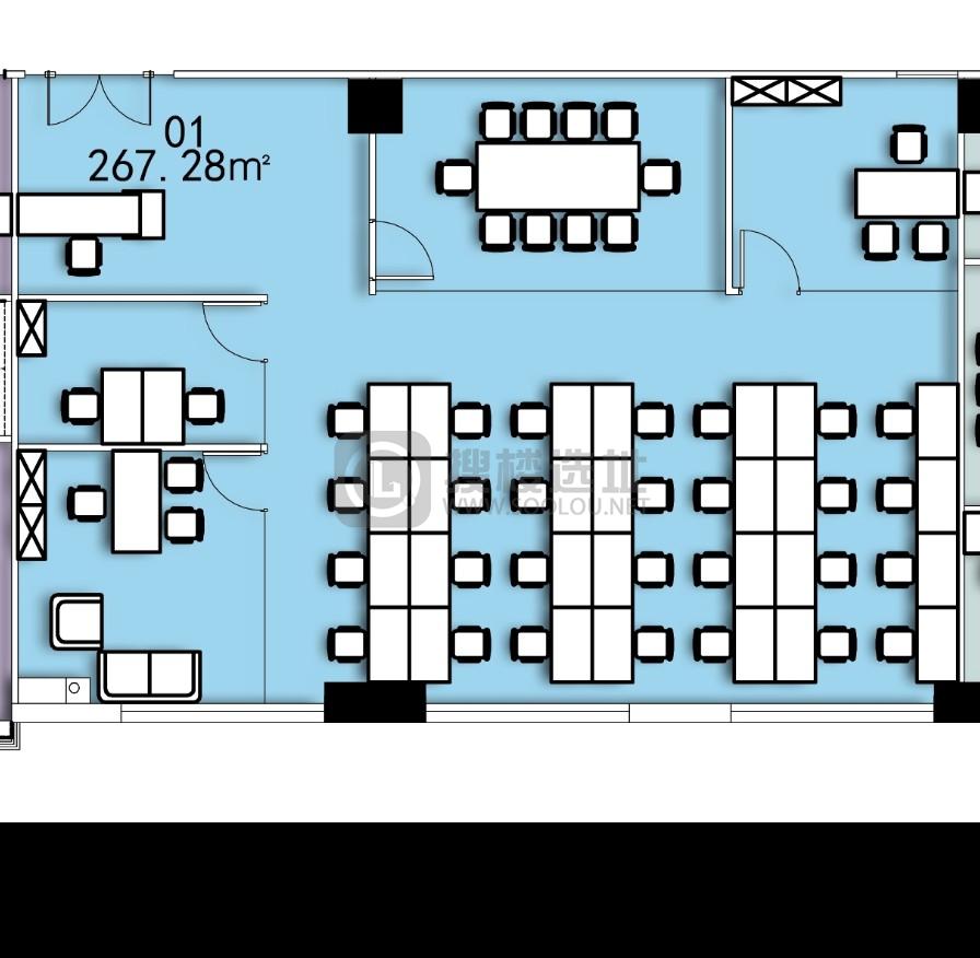 - 面积信息 268㎡,使用率约70% ,可容纳工位27~39个